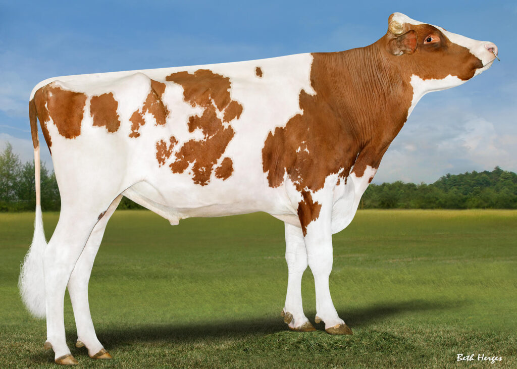 Axel is een geweldige stier voor elke roodbontfokker. Zijn moeder Hilrose Advent Anna EX-95 4E is een koe van topexterieur, die zeer succesvol was in de keuringsring en onder andere twee keer werd uitgeroepen tot reserve All American. Daarnaast is ze een geweldige fokkoe: in 2022 werd Hilrose, het bedrijf van haar fokkers, uitgeroepen tot Premier Breeder op de Wisconsin State Show, waar ze deelnam met een groep die louter bestond uit dochters en kleindochters van Anna!